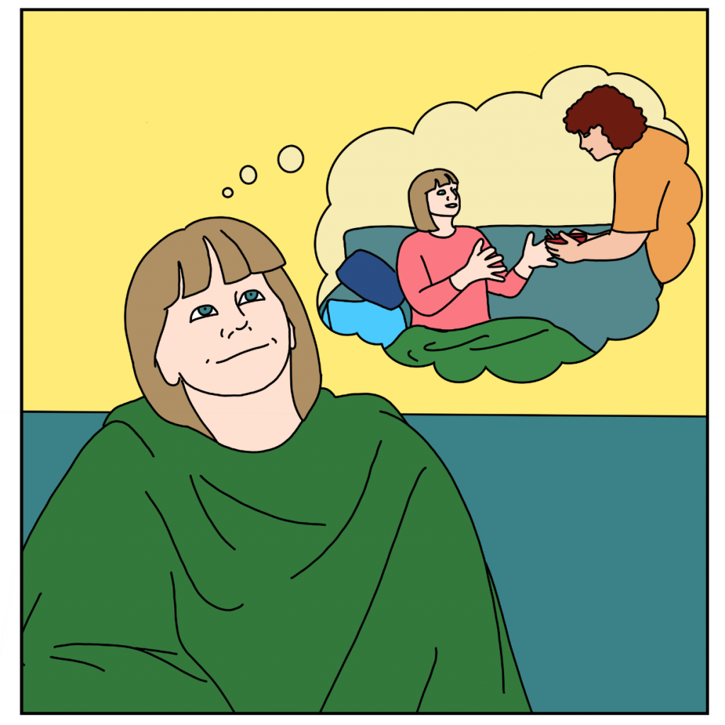 Ich frage mich: Was würde eine Freundin tun, wenn sie hier wäre, und ich hätte Hunger? Die Antwort lautet: sie würde mir etwas zu essen machen. Also übernehme ich den Platz meiner nicht anwesenden Freundin und mache mir selbst etwas zu essen. Wenn sie sich genug um mich sorgen würden, kann ich das auch.