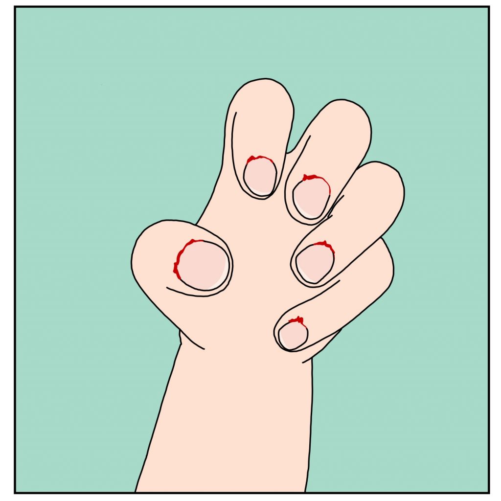 In Situationen, in denen ich nicht die Energie, die Konzentration oder die Motivation aufbringen kann, um etwas Sinnvolles zu tun, aber dennoch das Bedürfnis habe, produktiv zu sein, pule ich an meiner Haut herum. Ich habe keine Ahnung, warum ich denke, dass rohe Ränder an meinen Nägeln in irgendeiner Weise ein erstrebenswertes Ziel darstellen.