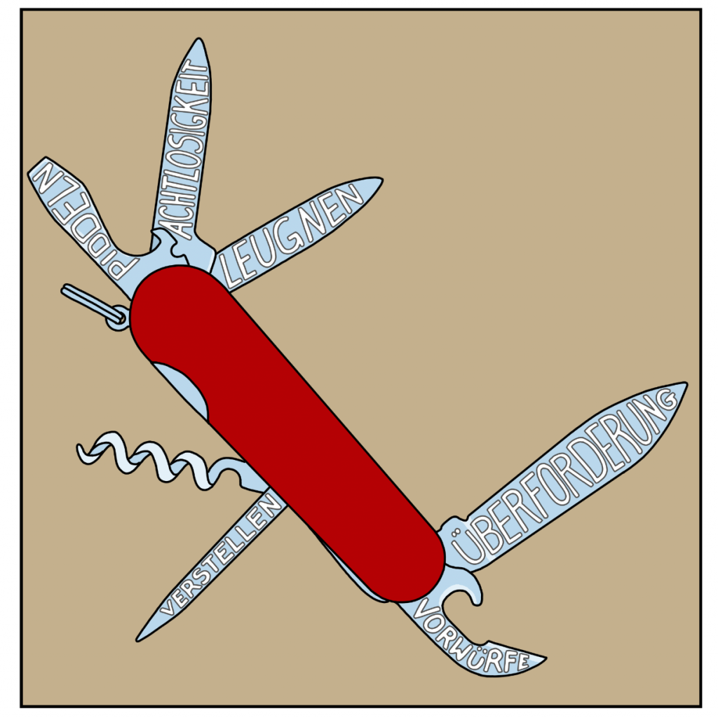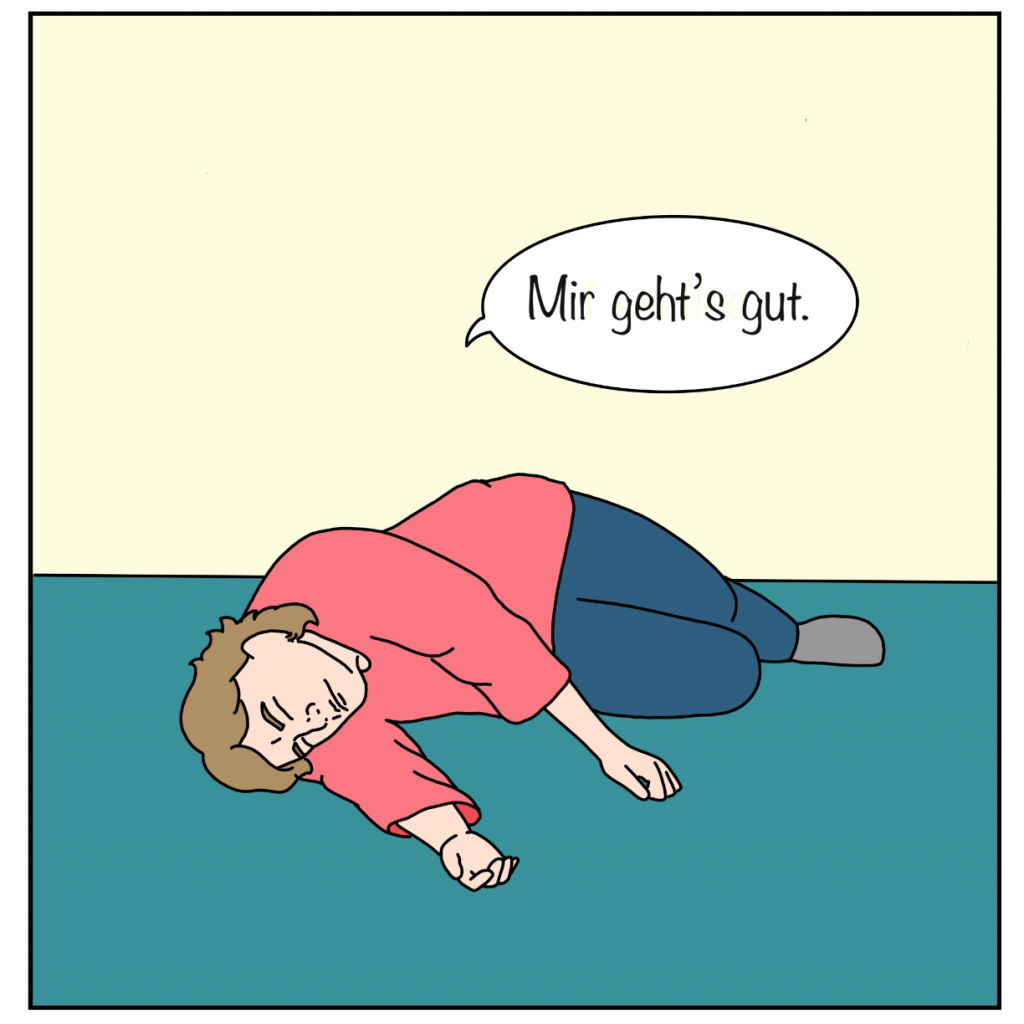 Oder ich erzähle meine Geschichte eben diesem neuen Psychiater oder einer Therapeutin und lockere die Stimmung zwischen den schwierigen Stellen mit einem Witz auf. Ich lache meinen Schmerz weg.