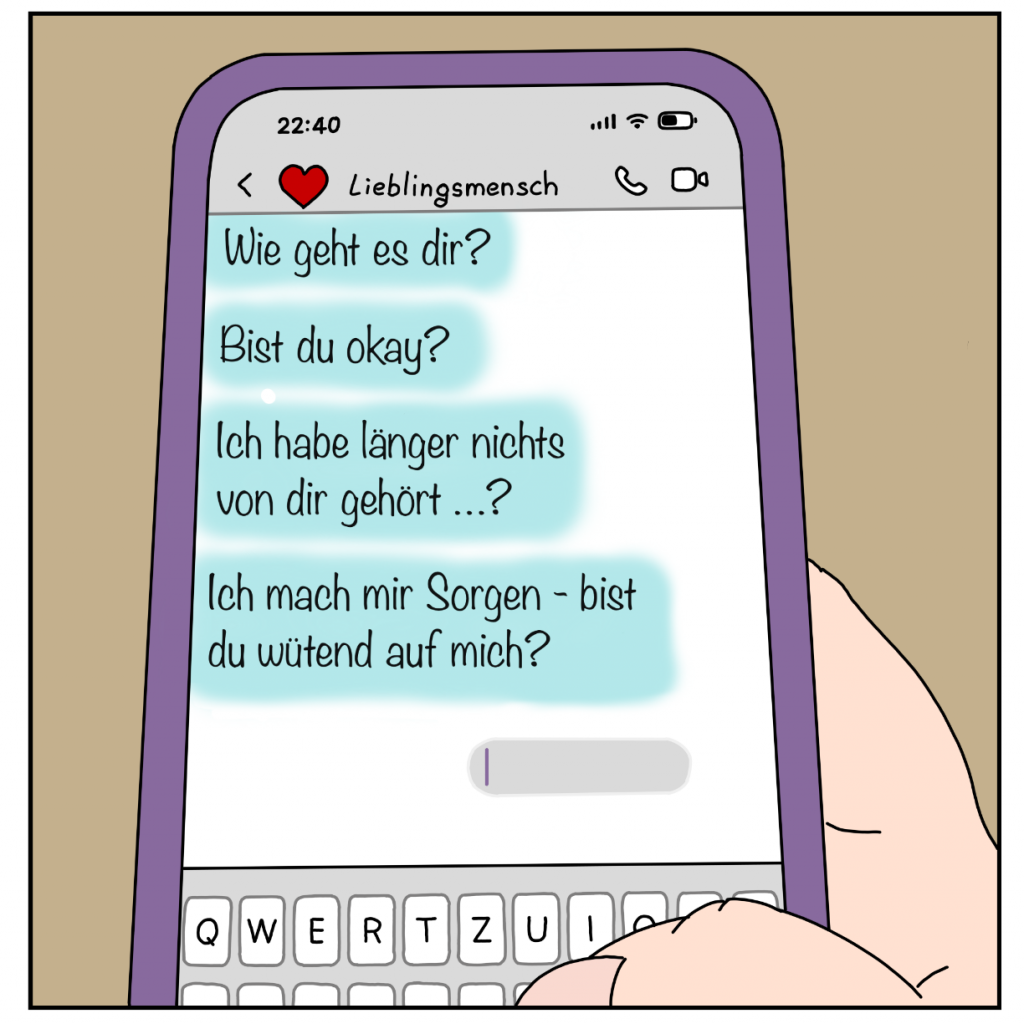 Dabei würde ich aus Scham den viel wichtigeren Punkt auslassen, dass ich mich niemandem aufdrängen will. Ich möchte keine Last sein. Ich möchte auch nicht den Mut fassen und jemanden um Hilfe bitten, nur um dann abgewiesen zu werden, denn das würde wehtun. Also bitte ich erst gar nicht darum.